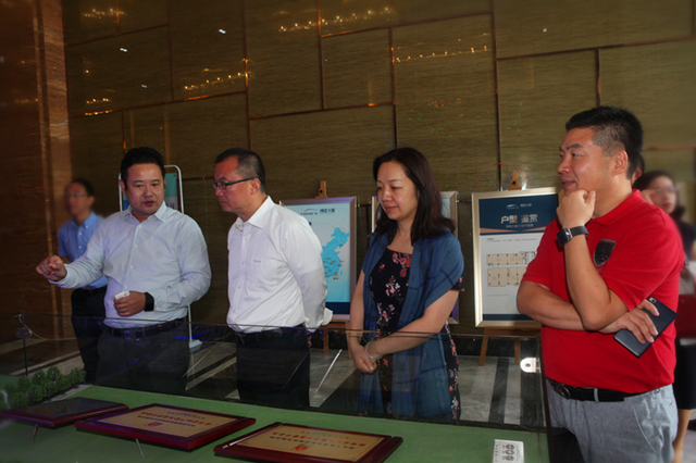 7月21日,南京市委常委、常务副市长杨学鹏到深业华东公司考察。南京市雨花台区委书记戴华杰、集团董事长吕华陪同考察。 吕华董事长陪同杨学鹏常务副市长一行参观深业滨江展示厅